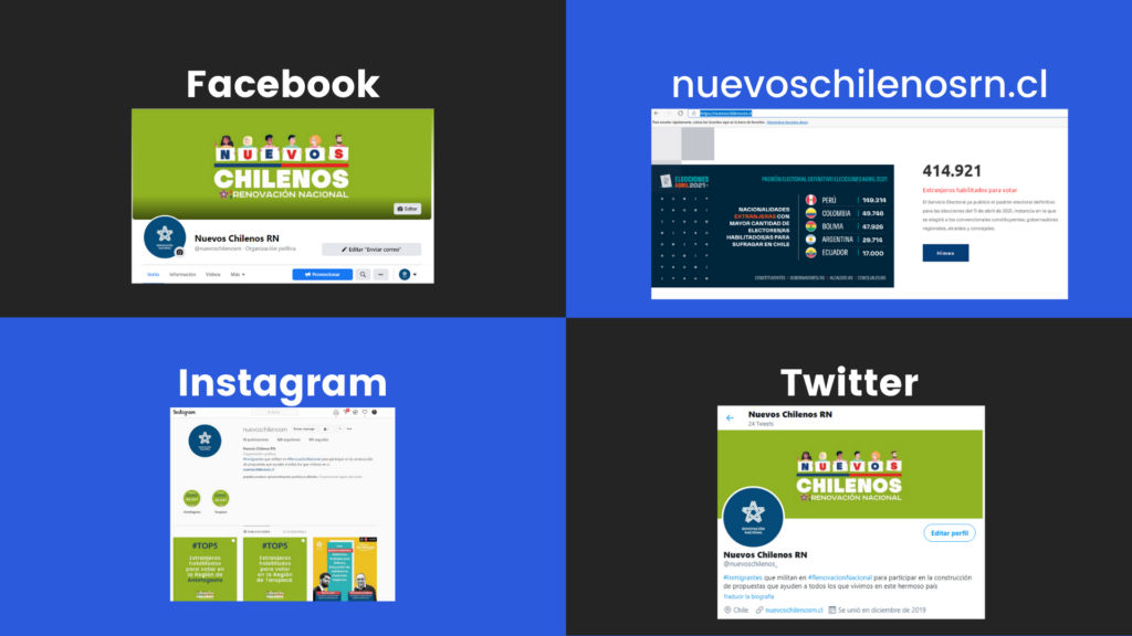 • Las cuentas oficiales en Facebook, Instagram y Twitter de Nuevos Chilenos RN.